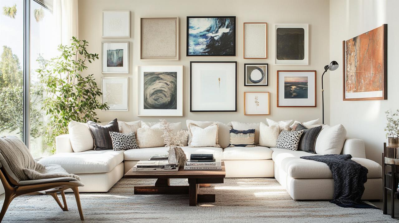 Le choix de l'emplacement constitue la première décision stratégique. Un mur galerie fonctionne particulièrement bien au-dessus d'un canapé, dans un couloir qui manque de personnalité, le long d'un escalier ou sur un grand mur vide qui appelle un point d'intérêt visuel. L'espace choisi doit permettre un recul suffisant pour apprécier l'ensemble de la composition sans avoir le nez collé aux cadres. Évitez les zones trop encombrées où la profusion d'éléments décoratifs créerait une surcharge visuelle.
